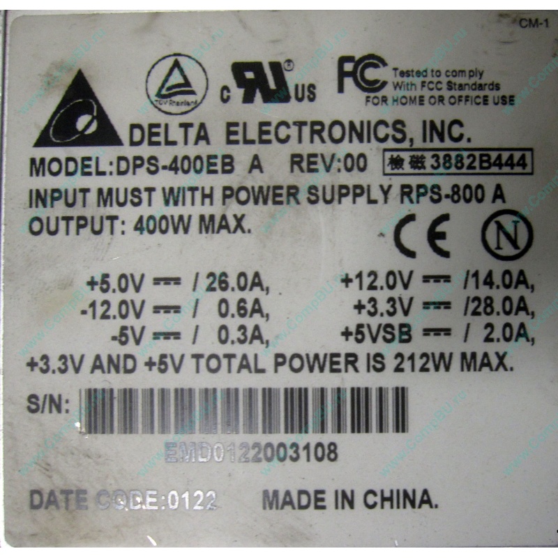 Серверный блок питания 400 W Delta Electronics DPS-400EB A Rev:00 для корзины RPS-800.