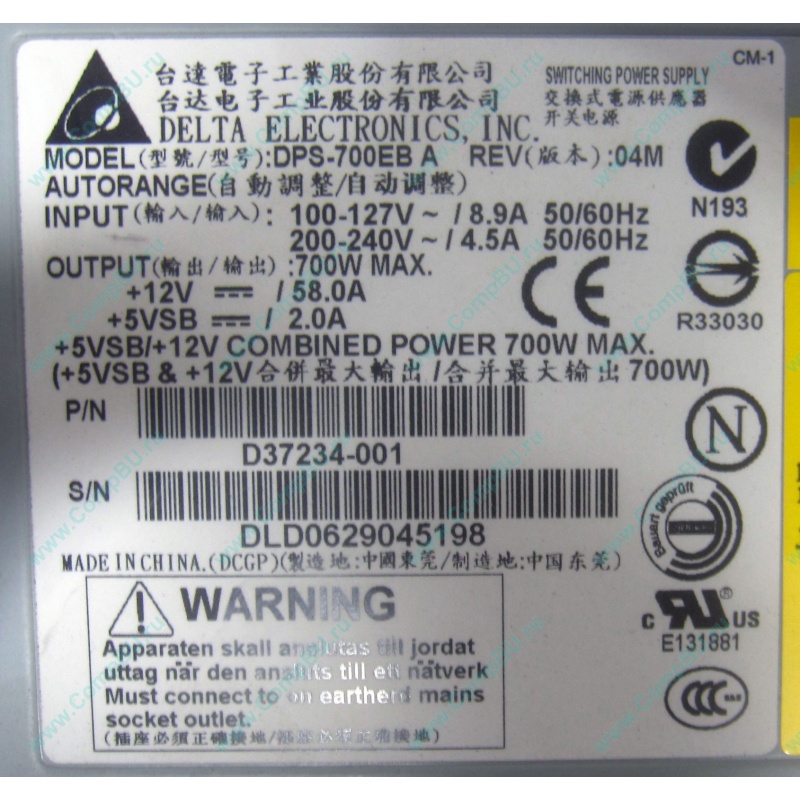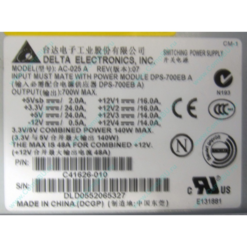 Корпус (case): серверный корпус Iitel SR2400 (высота 2U), установлены 2 блока питания 700W Delta Electronics C41626-010 AC-025A